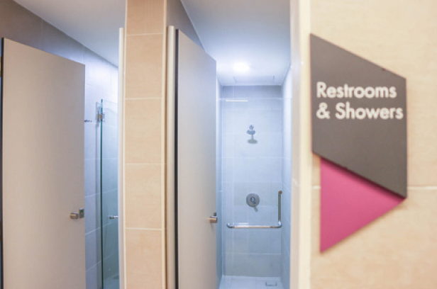 每一层楼都有一个功能完备、干净分离的洗浴间,里面有多个单独的浴室,私密性良好,并提供全天热水。